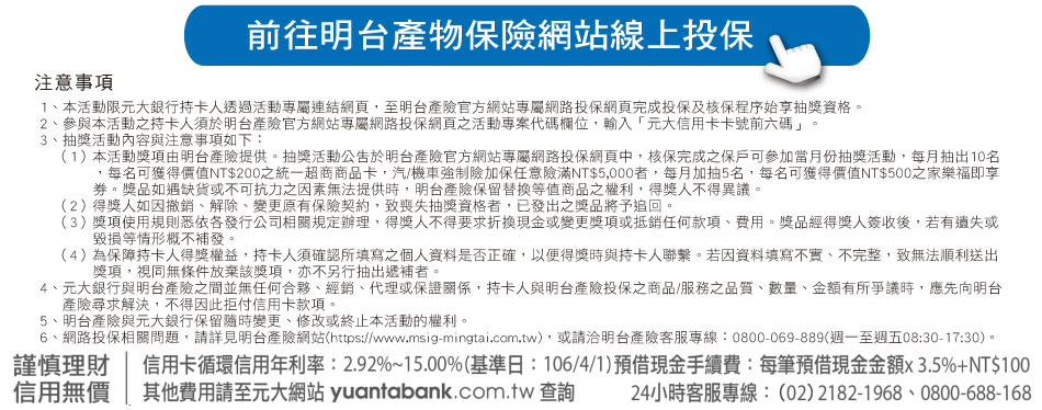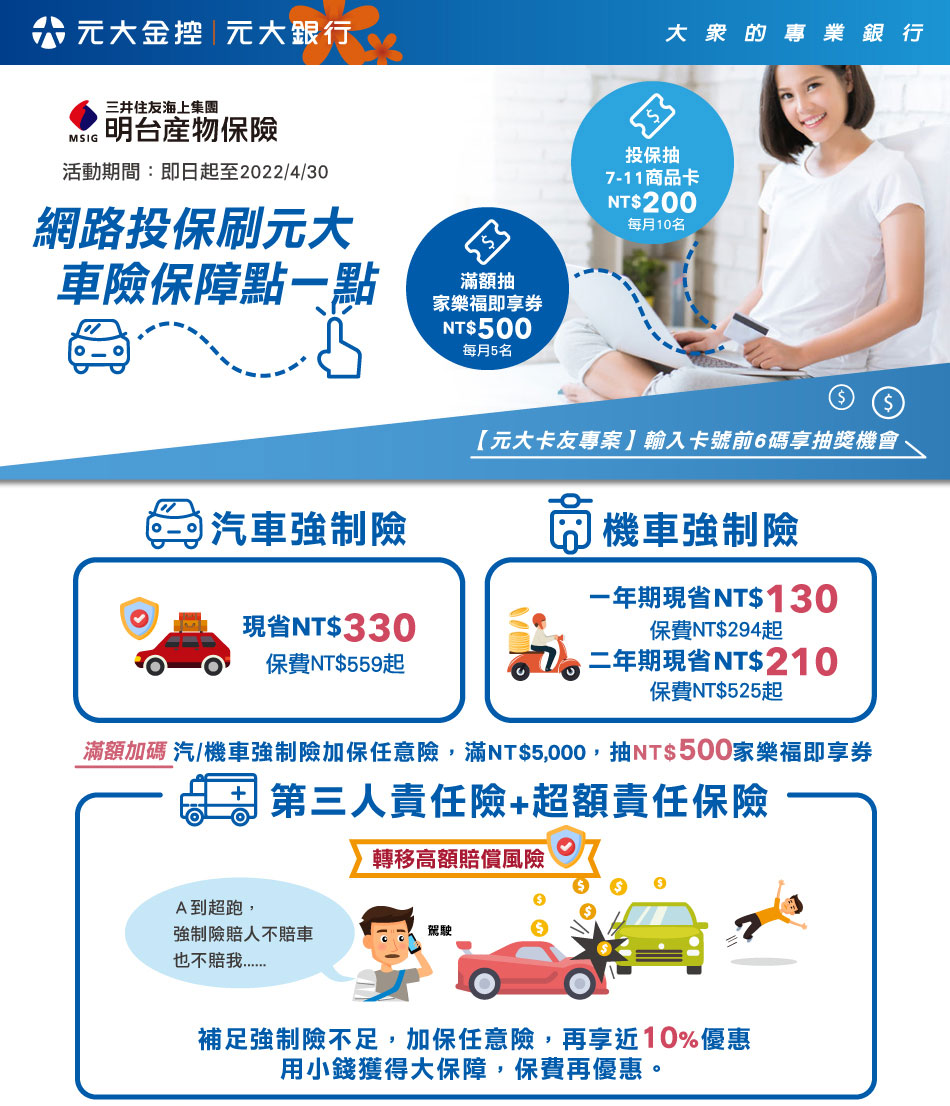 【元大卡友專案】線上保車險,抽涵碧樓住宿券、7-11商品卡!