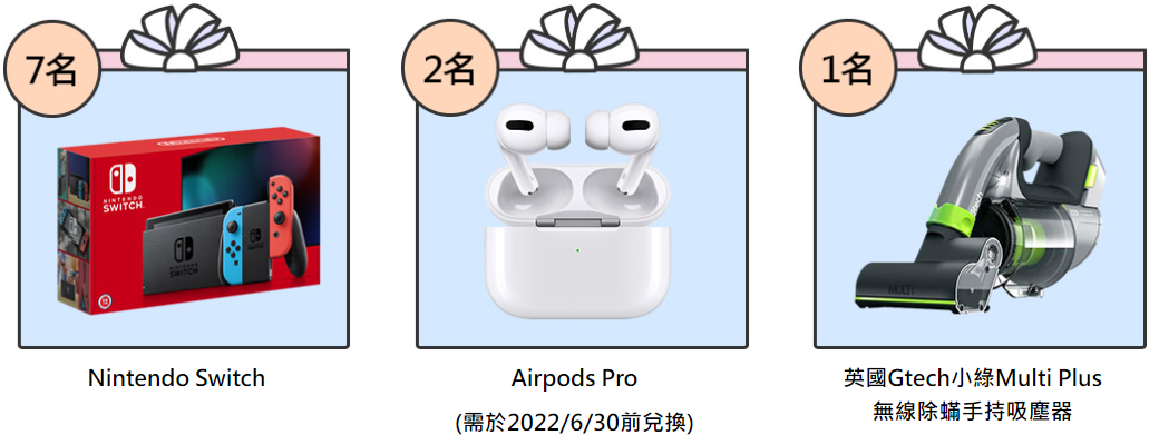 活動注意事項 : 1.本活動需於2022/3/15-4/30(含)前透過指定連結申辦指定卡別正卡,且需於活動回饋檢核時仍為有效卡。指定卡別為:@GoGo卡、FlyGo卡、玫瑰Giving卡、街口聯名卡。 2.參加本活動之信用卡卡友需於2022/5/6前任刷一筆消費方可贈200元7-11禮券。如於活動期間申辦兩張指定卡,則兩張卡片皆需於2022/5/6前任刷一筆消費方可獲贈回饋,以此類推。 3.核卡日以台新銀行系統資料為準,刷卡消費以交易日為計算基準,不列入刷卡消費計算之項目為:電子支付儲值卡(如一卡通)自動加值、Samsung Pay悠遊卡加值、全聯福利中心消費(含PX Pay消費)、便利商店(7-11/全家/萊爾富/OK超商等,含使用各種形式刷卡,如以Apple Pay/Samsung Pay/Google Pay/Garmin Pay/Fitbit Pay/Hami Pay等支付工具綁定台新信用卡支付消費)、各項代扣繳費用(含水/電/瓦斯費、中華電信費、遠傳電信費、eTag自動儲值、國內學費等)、躉繳保費、投資型保費、三商美邦保費、藥安康藥局消費、臺北醫學大學附設醫院費用、各縣市路邊停車費、透過各繳費平台(如e-Bill全國繳費/i繳費/醫指付/電子化繳費稅處理平台(含台灣大哥大)/NCCC公務機關信用卡繳費平台/台新繳費中心(含台新繳費中心網頁/Richart Life APP/Richart APP/行動銀行等通路)等)繳納之各項費用、政府規費、違規罰鍰、透過「聯合信用卡處理中心」提供之信用卡小額支付特約商店之消費(如停車場/麥當勞等同性質連鎖速食店等)、預借現金及其手續費、預借現金分期金及其手續費、代償他行信用卡/現金卡/小額信貸等之金額、個人綜合所得稅、所得稅分期付款期金及其手續費、查核定稅(房屋稅/地價稅/牌照稅/燃料費等)、違約金、循環息、基金交易及其手續費、信用卡年費及一般信用卡相關手續費(如掛失手續費/調閱簽單手續費等)。 4.回饋之7-11禮券預計於2022/5/25起陸續以簡訊方式統一發送禮券序號至正卡人留存於台新銀行之行動電話號碼,實際依台新銀行作業時間為準。 5.抽獎活動預計於 2022/5/25前寄發機會中獎回覆函通知中獎人,中獎人需於2022/6/10(含)前,以紙本方式寄送機會中獎回覆函與所檢附資料予台新銀行指定單位,贈品預計於 2022/6/21前寄送至正卡人留存於台新銀行之手機號碼/帳單地址。 6.台新銀行將依所得稅法及各類所得扣繳稅率標準,就本活動抽獎贈品所得扣繳或/及申報,中獎人若為中華民國境內居住之個人,台新銀行將依上述法令就贈品所得列單申報主管稽徵機關。若贈品之價值超過新臺幣20,010元,中獎人需自行負擔10%稅額(非中華民國境內居住之個人,無論金額多寡,依法扣繳20%稅額)並配合台新銀行辦理代扣繳相關事宜,預扣稅金後,始得領取贈品,贈品一經領取恕無法退還,未於期限內領取贈品視同放棄權利。 7.贈品規格如下: Airpods Pro: (1) Airpods Pro將以即享券方式提供,會以簡訊發送即享券序號至正卡持卡人留存於台新銀行之手機號碼通知符合中獎資格之正卡人,依照台新銀行留存資料為準。商品存貨狀態將以Apple原廠資訊為準,此兌換券會於2022/6/30到期,請持券者盡速兌換。若因Apple原廠無存貨致無法供貨,Edenred Taiwan保有提供其他等值商品之權利。 (2)上述即享券發行人為Edenred Taiwan新加坡商宜睿智慧股份有限公司台灣分公司。 (3)本券為企業贈品專用,請於指定日期前兌換,不得零售或轉售。 (4)本券為不記名,任何人持本券皆可使用,請自行妥善保管,如遭他人盜用,本券不再補發。 (5)本券所兌換之商品或折抵消費之金額不予開立統一發票。 (6)本券有效與否,以發行人票券系統所記錄之狀態為憑。如系統因網路連線有所遲延,依兌換商家系統端資訊為準。 (7)本券為有價證券,請勿擅自偽造、變造,以免觸犯刑責。 (8)宜睿智慧即享券客服中心(服務時間:週一至週五上午10:00至下午6:00) 您可透由客服常見問題聯絡宜睿智慧即享券客服中心或撥打客服專線:(02)6639-1012 Nintendo Switch 藍紅主機: (A)顏色:藍紅 (B)尺寸: 25*10*1.5cm (C)重量:1.5kg Panasonic 奈米水離子吹風機(EH-NA9B): (A)型號:EH-NA9B (B)顏色:桃紅色 (C)電壓: AC100V 50-60Hz 1200W (D)尺寸:H 22.8cmx W 21.4cm xL9.2cm BRUNO電烤盤 : (A)材質:主體–鋼/酚醛樹脂(B)內層:鋁壓鑄產品尺寸:W 375mm×H 140mm×D 235mm (C)包裝尺寸:W 276mm×H 180mm×D 410mm 英國Gtech小綠Multi Plus無線除蟎手持吸塵器: 型號:ATF012/MK2/充飽電運行時間:20分鐘(運行時間的長短,會因為環境不同而有所差異)/主機重量:1.6kg/裝箱重量:3.1kg/主機尺寸(cm):長38*寬12*高23/配件:電動滾刷吸頭 x1、延長管 x1、縫隙吸頭 x1(儲藏在主機底部)、除塵刷頭x1、伸縮軟管x1(已安裝)、22V鋰電池x1(已安裝於機身)、充電器x1(100-240V)、說明書x1/保固:主機2年保固;電池1年保固/產地:英國設計中國組裝/支援全球100~240V電壓。 20吋金色ABS行李箱: (A)尺寸: 長34cm*寬20cm*高52cm(含輪高) (B)重量:2.2kg。 8.台新銀行並非上述活動贈品之製造者或提供者,與該活動贈品之提供廠商並無任何代理、經銷、保證或合夥關係。如因使用活動贈品產生任何爭議,由該活動贈品之提供廠商自負責任。 9.持卡人所持之台新銀行信用卡若發生停卡、不續卡、遭限制或停止使用或延滯繳款、違反「台新銀行信用卡會員約定條款」等情事者,持卡人將自動喪失回饋資格,台新銀行不另行通知。 10.台新銀行保留核准發卡與否,調整額度及信用卡服務內容之權利,不論發卡與否,申請書及所附文件,台新銀行均不予退還。 11.