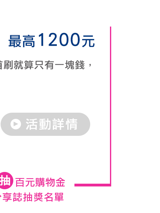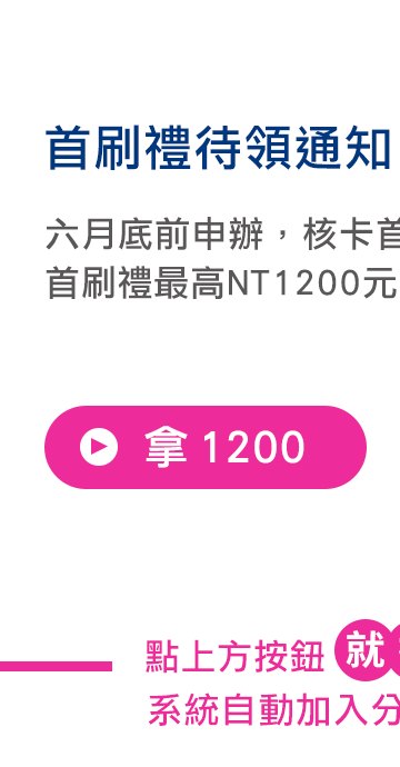【若無法顯示,請點此觀看網頁版,謝謝!】 即日起至2022/6/30止,完成指定任務抽最高NT$80,000刷卡金! 活...