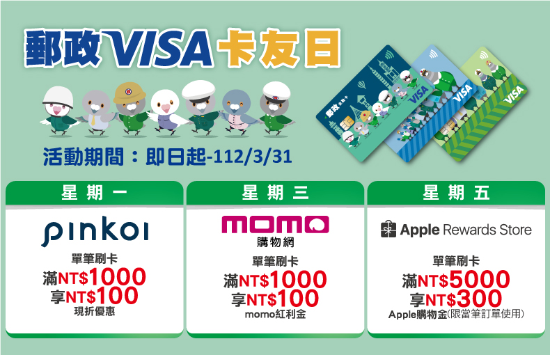 郵政VISA卡友日優惠活動&線上開立國票、凱基證券帳戶綁定郵局帳戶(出入金帳戶)享優惠!