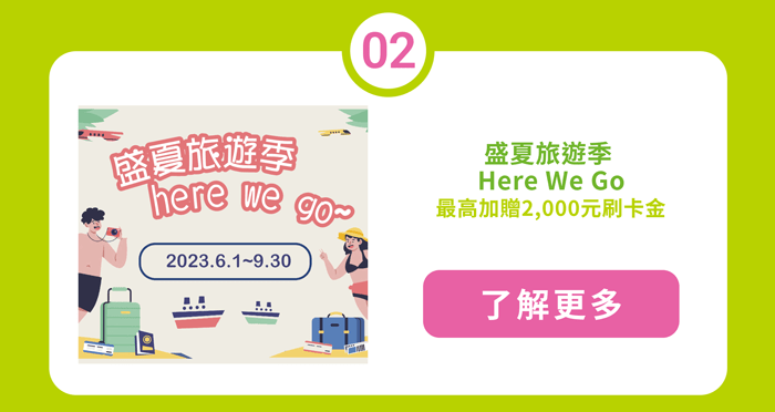 【若無法顯示,請點此觀看網頁版,謝謝!】 即日起至2022/6/30止,完成指定任務抽最高NT$80,000刷卡金! 活...